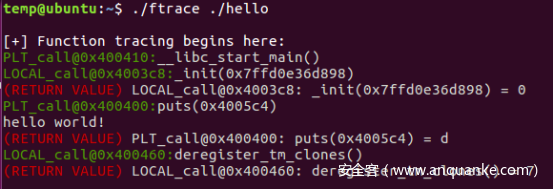 除了ltrace和strace,我们还可以使用基于ptrace编写的相关分析工具,例如:ftrace工具;(https://github.com/elfmaster/ftrace)