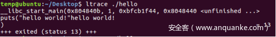 Linux平台提供了多种工具支持对Linux样本进行动态分析,我们可以通过调用ltrace和strace对程序调用进行监控;ltrace能够跟踪进程的库函数调用,它会显现出哪个库函数被调用,而strace则是跟踪程序的每个系统调用。