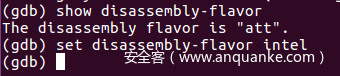 set disassembly-flavor intel:将汇编指令格式设置为intel格式