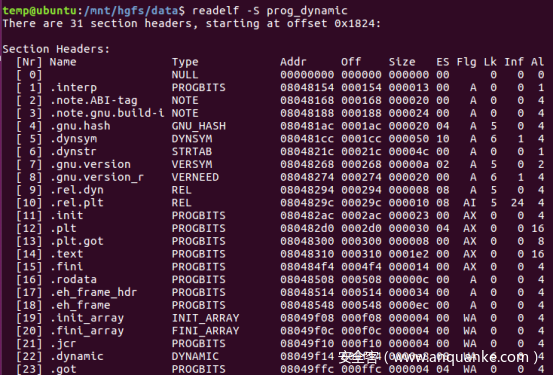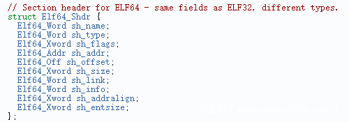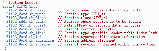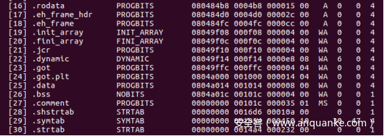 ELF文件中还有很多节类型,例如:.text、.got、.plt等,这里暂不一一介绍,网络中有很多分析说明,大家可以自行研究。