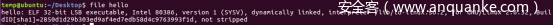 在分析Linux样本前,首先需要辨识文件类型,可以通过“file”命令查看文件的类型(可执行文件?位数?链接方式?)。