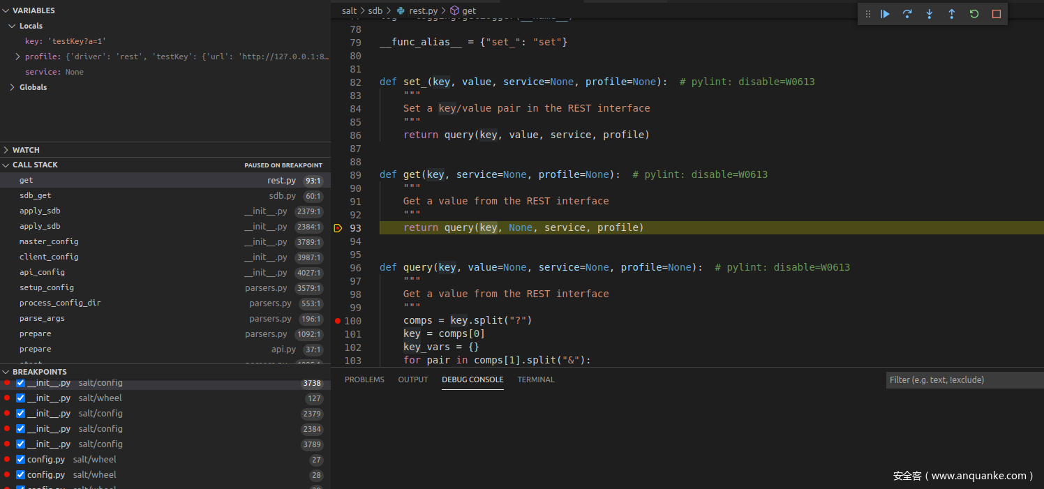 debug的时候先开个终端启动salt-master,再用vscode debug salt-api