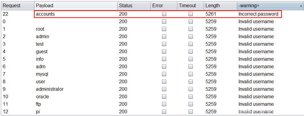 我们看到这个差异真的太微妙了,所以这时候正则提取的好处就来了,一下子就筛选出来了,然后我们再利用相同的方法爆破密码就可以了