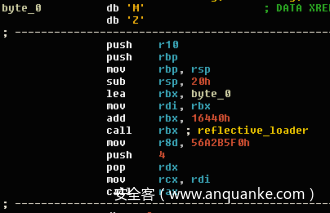 将全局数据写入管道的过程实际上是写入了第三个payload,这个payload经过XOR加密处理,加密方式与数据读取方式相同。payload解密后会得到一个PE文件,文件头为Meterpreter头。恶意软件会解析PE头部中包含的指令,将控制权移交给反射加载器:
