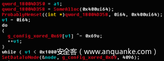 第3个payload加载成功后会连接C2服务器,C2服务器地址已硬编码到PE文件的配置信息区域中,而配置信息会在第3个payload运行时异或解密: