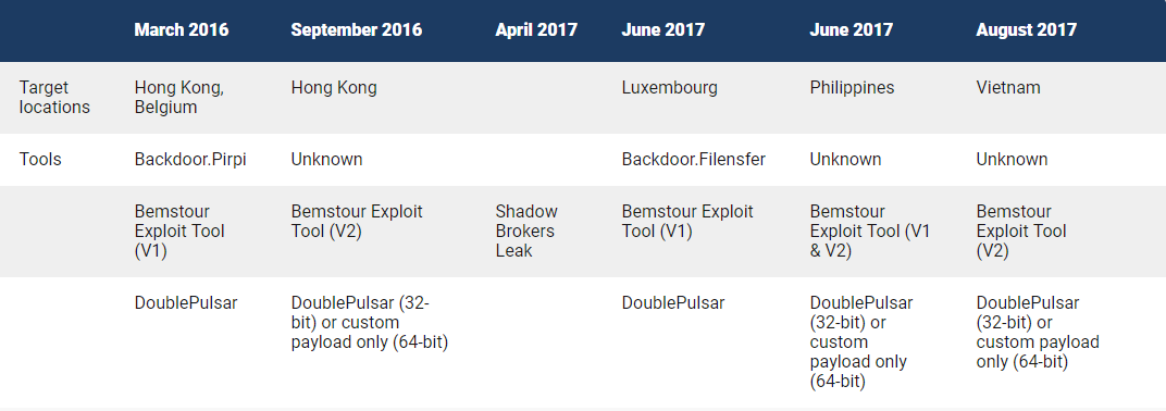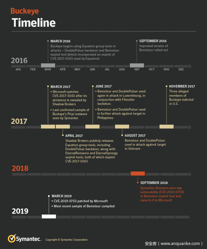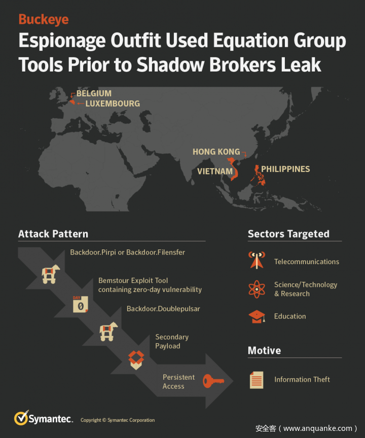然而,根据赛门铁克安全研究人员的发现,Buckeye网络间谍组织(又名APT3或哥特式熊猫)早在影子经纪人泄密的前一年就已经开始使用方程式组织的黑客工具了。