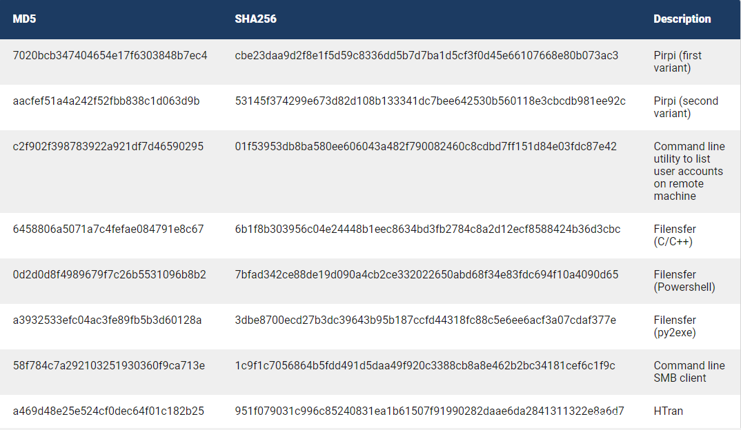 值得注意的是,Buckeye的攻击者从未在其攻击活动中使用过Fuzzbunch框架。Fuzzbunch框架是一款主要用来管理DoublePulsar和方程式组织其他工具的框架,由影子经纪人在2017年泄露出来。这也表明,Buckeye只能使用有限数量的方程式组织黑客工具。