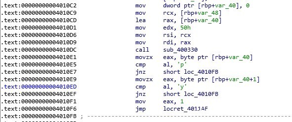 题目的逻辑还是挺清晰的,关键函数是sub_40108E(),查看汇编代码