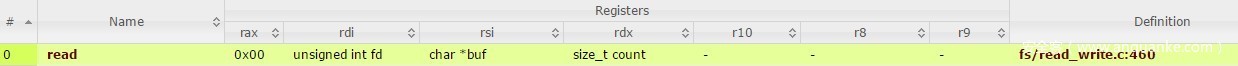 这里还要用到一个网站,因为64位系统是用寄存器传参的,所以要想调用read(),需要知道函数的系统调用号,和相应寄存器的值