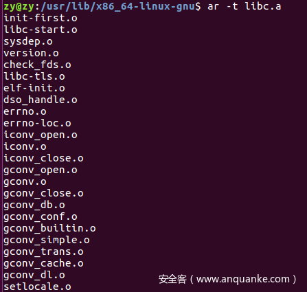 用ar工具查看这个文件包含了哪些目标文件