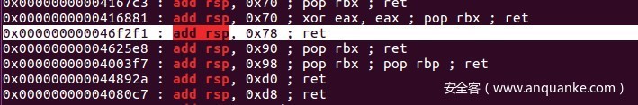但是现在还有一个问题,就是strncpy(),这个函数以”x00”为截断字符,但是这是64位程序,地址不可避免的会出现00,此时可以找到一个gadget将栈抬高,再填充ropchain。