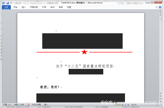 下面是我们截获的第三个使用了RLO伪装的专用木马样本信息及该样本打开后的截图。该文件的文件名格式伪装方法与前述两个样本相同,但具体内容则伪装成了一份智库文件。
