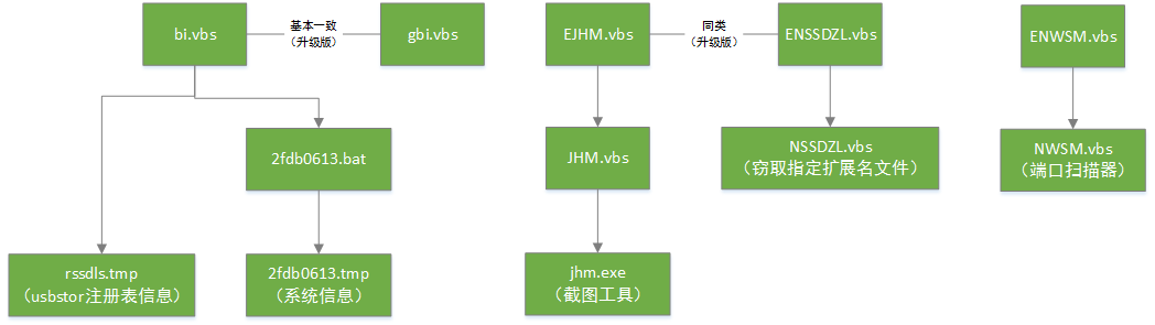 NWSM.vbs是由ENWSM.vbs释放。NWSM.vbs功能最为复杂,包含内网渗透,并且通过流试方式写入脚本。