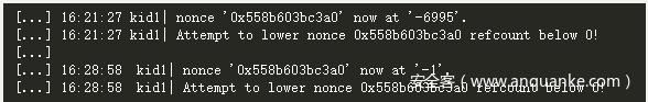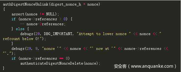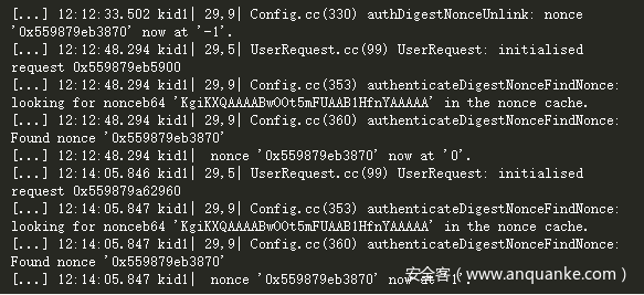 对于请求B,不能使用用于增加引用计数器的相同类型的请求。实际上,当一个nonce对象在从缓存中删除之前就被删除(这基本上是有效nonce的列表),Squid会崩溃,并出现一个失败的断言。