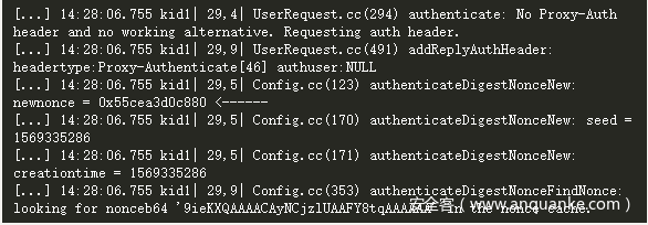 在Squid的日志中,我们可以观察到随机数的创建(具有正确的信息复杂度):