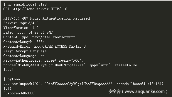 由于_digest_nonce_data包含指向digest_nonce_h对象的指针,因此我们可以在Proxy-Authorization HTTP头部中获取它。