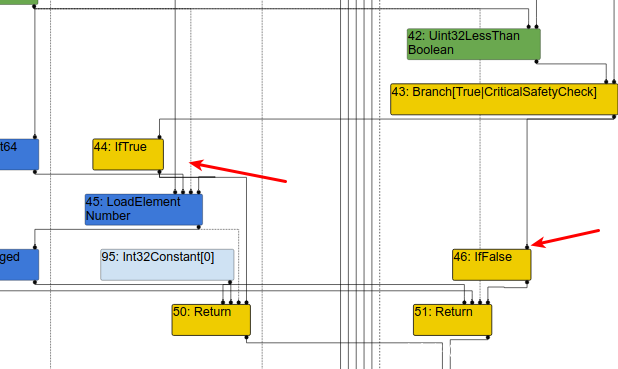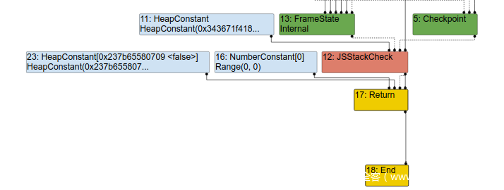 在TyperLowering 阶段优化图中已经没有了LessThan节点 并被替换成了false节点(上面的23号节点)