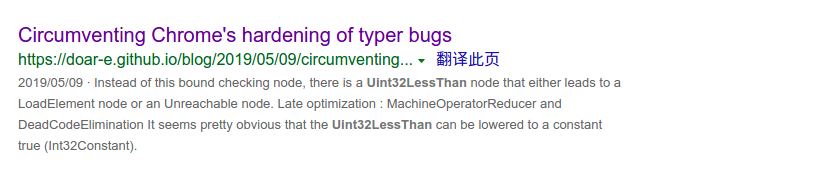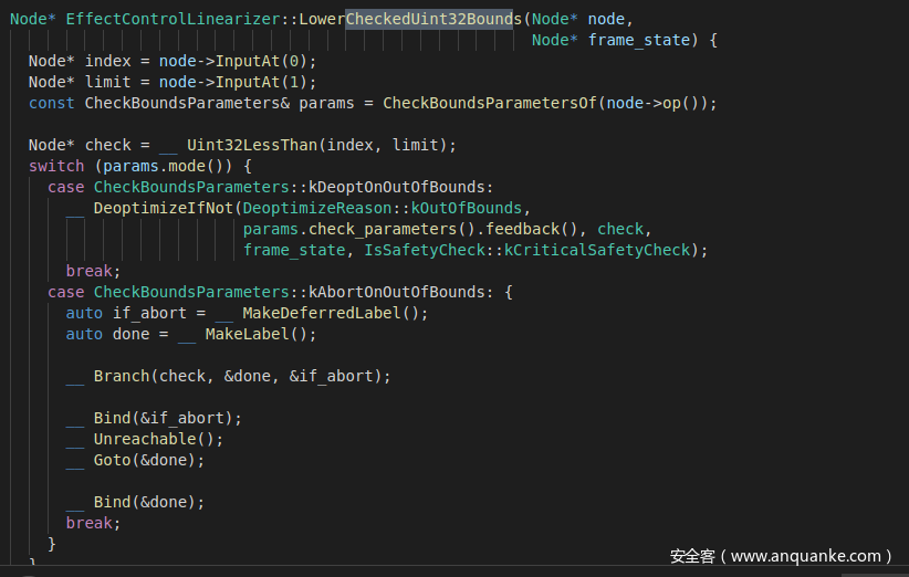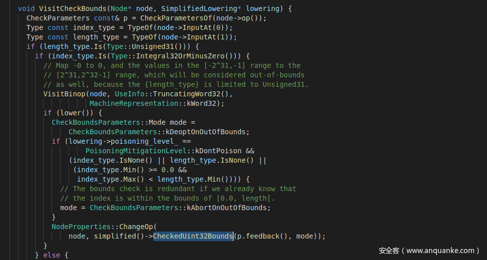 重新看patch中源码的位置, 对应的cc文件是machine-operator-reducer.cc,想起了前两天看的资料,这个文件中的函数应该是在TyperLowering阶段之后应用的,因为machiner 节点是这个优化之后的. 而且要得到的是Uint32类型的machine 节点,那么其对应的比较节点应该是Uint32Lessthan