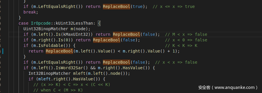 这个函数应该是优化时进行节点的简化用的. 比如x < 0会被替换成false节点
