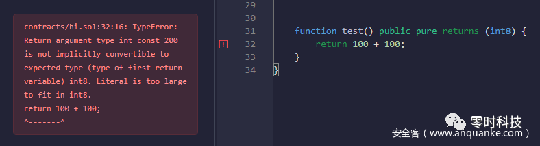 和通用型编程语言一样,我们先看看编译期是否会发生溢出: