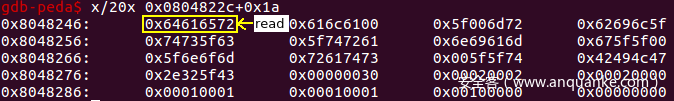 0x80482b0: 0x0804a00c 0x00000107 0x0804a010 0x00000207
