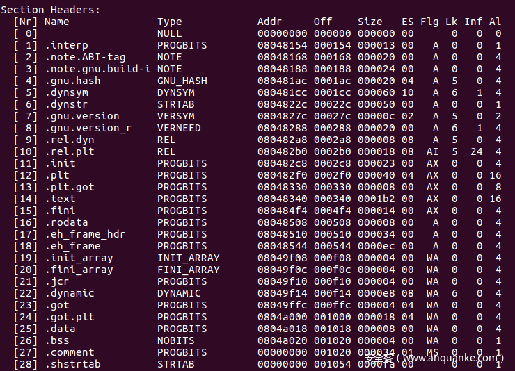 其中.dynsym, .dynstr, .rel.dyn, rel.plt, .plt, .plt.got, .got,.got.plt等, 这些section请大家注意一下, 后面要用到.