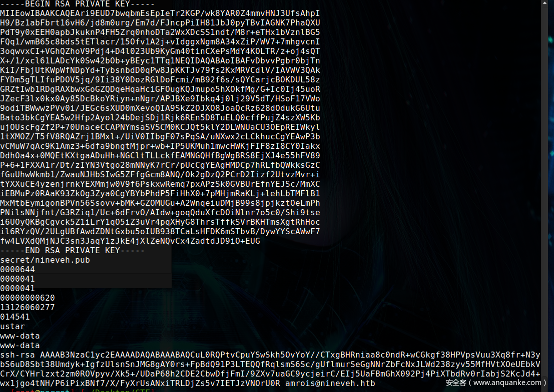 本靶机还可以通过获取ssh key 来提权,ssh key写在一个名叫“nineveh.png”图片内,如图: