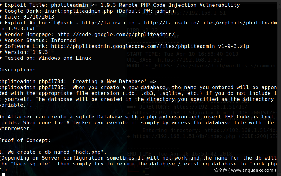 访问/db/ 发现使用phpliteadmin v1.9 这么明显标示的肯定是有问题的,不用怀疑google搜一波,发现存在远程命令执行漏洞