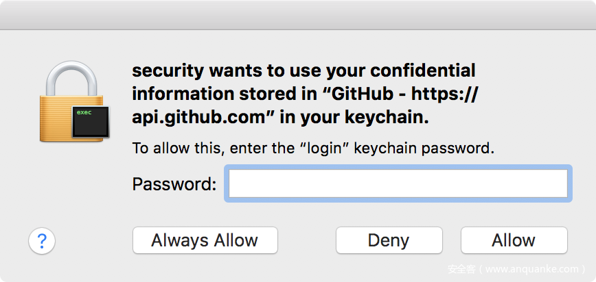 在High Sierra系统上(可能包括较老版本的macOS),如果有人尝试通过代码将鼠标事件发送至访问keychain之类的提示窗口时,操作系统会检测到这种行为并加以阻止: