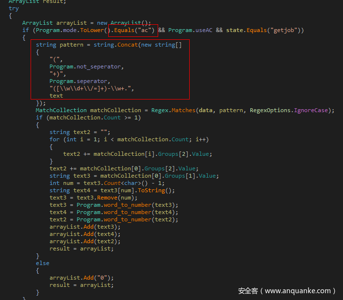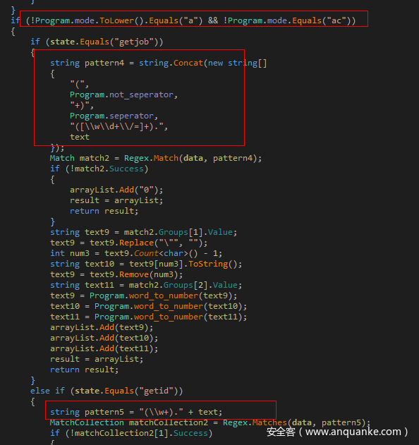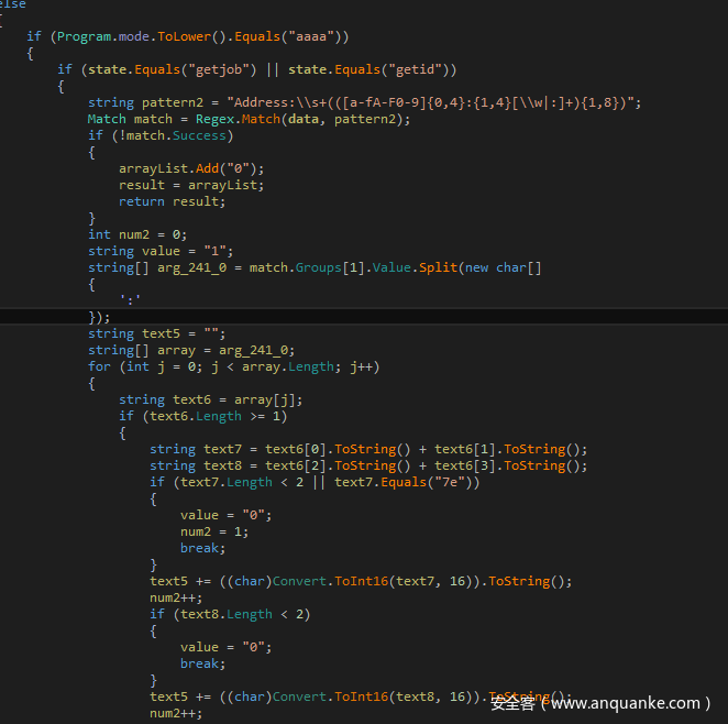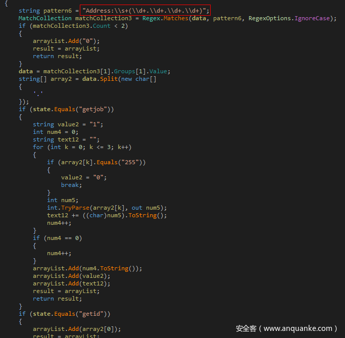 木马会根据不同的查询类型,使用不同的正则表达式去匹配攻击者的DNS服务器返回的结果数据: