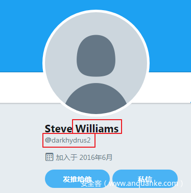 有趣的是,我们关联到某个Twitter用户@darkhydrus2的昵称为Steve Williams,该用户名与DarkHydrus吻合,且昵称williams与此次C#编写的木马程序的PDB路径又有些关联: