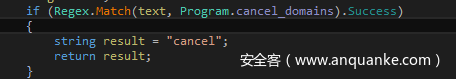 如果当返回的DNS请求结果中被”216.58.192.174|2a00:1450:4001:81a::200e|2200::|download.microsoft.com|ntservicepack.microsoft.com|windowsupdate.microsoft.com|update.microsoft.com”正则表达式命中,则代表请求被取消,则不会执行后续的操作:
