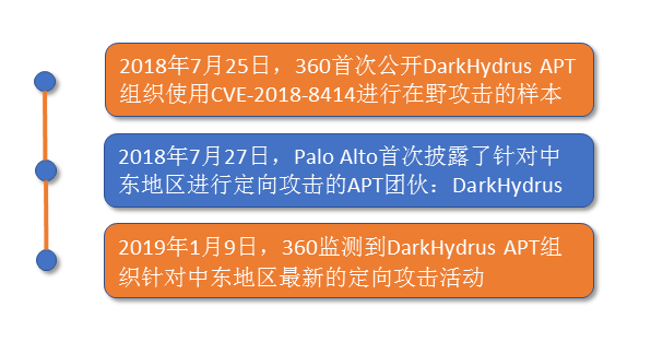 360威胁情报中心经过溯源和关联后确认,这是DarkHydrus APT组织针对中东地区的又一次定向攻击行动。DarkHydrus APT组织是Palo Alto在2018年7月首次公开披露的针对中东地区政府机构进行定向攻击的APT团伙[1]。而在此之前,360威胁情报中心曾发现并公开过该组织使用SettingContent-ms文件任意代码执行漏洞(CVE-2018-8414)进行在野攻击的样本,并进行了详细分析[2]。