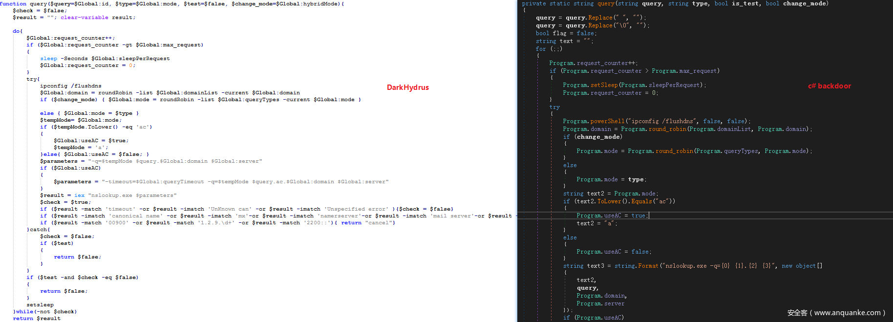 与之前Palo Alto披露[2]的木马类似的,都使用了相同的DNS隧道通信技术: