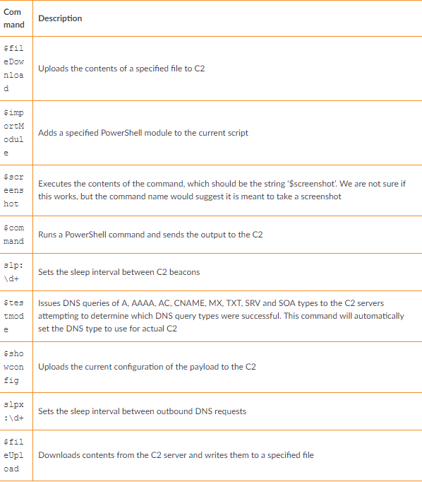| CNAME、TXT、SRV、SOA、MX | ([^r-v\\s]+)[r-v]([\\w\\d+\\/=]+)-\\w+.(<C2DOMIAN>)和(\\w+).(<C2DOMIAN>) |