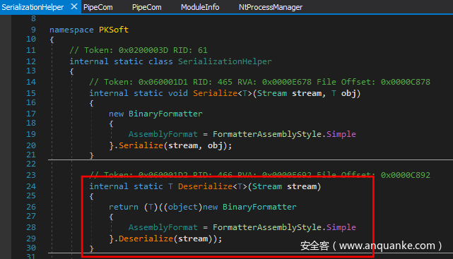 通过调试客户端验证反序列化缺陷后,接下来我们可以看一下是否能抛开调试器完成该任务。因此,我们必须绕过如下限制: