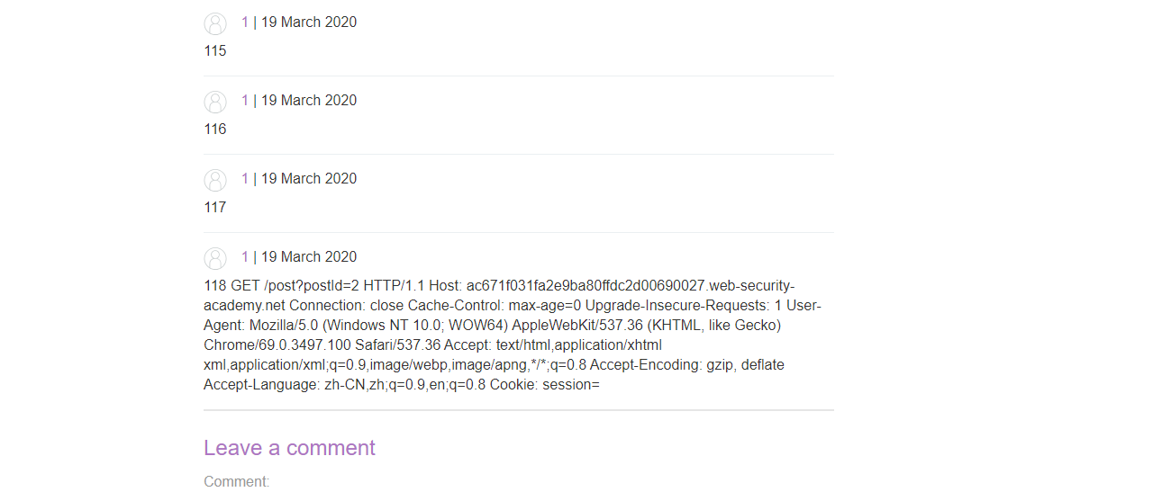 成功把用户的请求拼接到走私请求的comment参数上,如下图