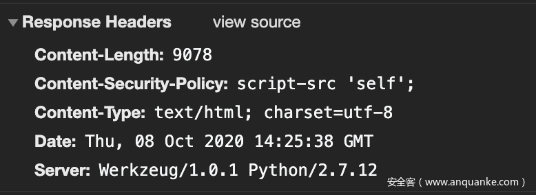响应头中返回了Content-Security-Policy: script-src 'self';