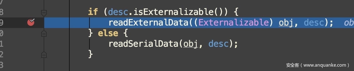在反序列化时会判断实例所属的类是否实现了Externalizable接口