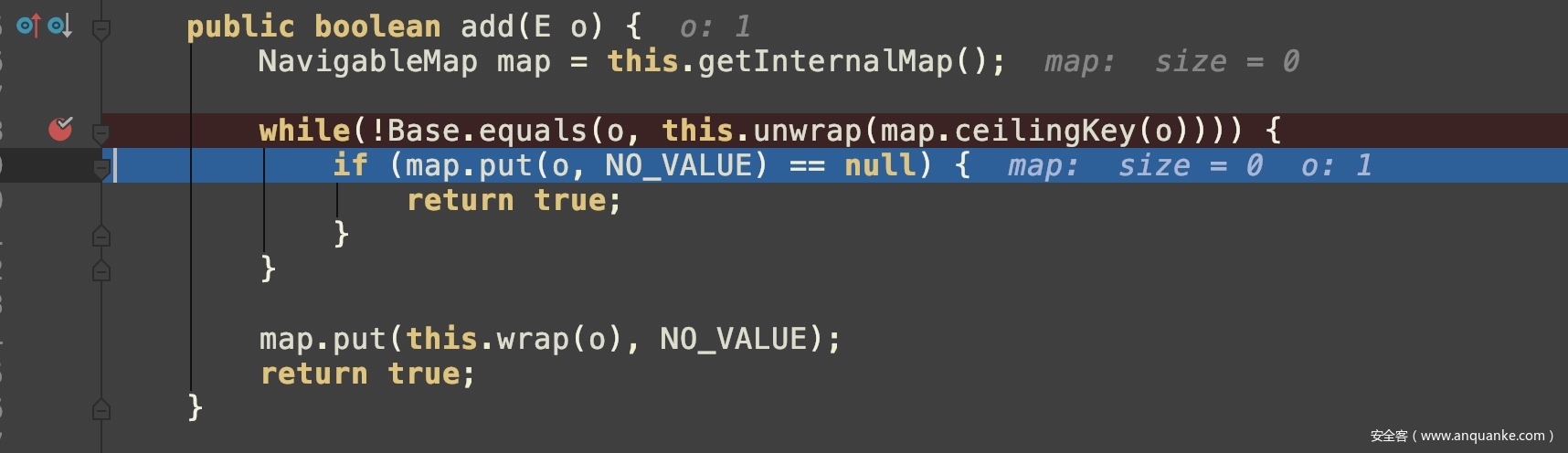 继续跟进super.add(value),进入map.put操作