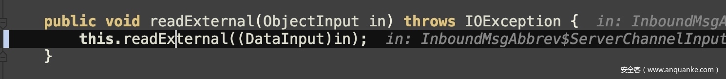 那只需要关注在递归过程中,每个ExternalizableLiteImpl在调用自定义readExternal还原数据流时是否有危险操作,且参数可控的情况。
