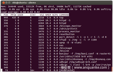 使用top命令,可以看到路由器中启动的进程,如下图所示。
