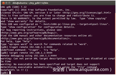 重新启动路由器,按前面步骤打开gdbserver,并将gdb连接到gdbserver上,然后执行