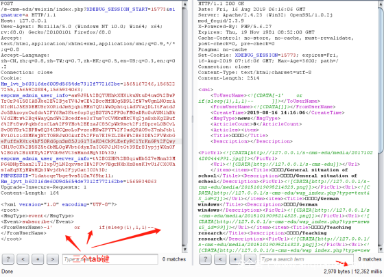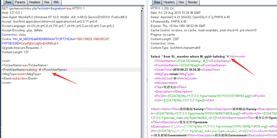 问题在于传参方式,由于XML是用php://input方式传入,从而绕过了检测机制。于是就产生了SQL注入。加入了一句输出语句方便观察语句拼接的结果。