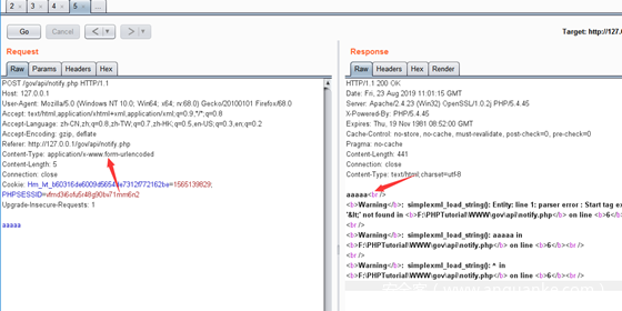 看源代码,又是熟悉的配方,又是漏洞的味道。但是一开始并没发现这个点,是因为换了传参方式。上面提到的XXE是使用伪协议php://input的方式传参,而$GLOBALS[‘HTTP_RAW_POST_DATA’]在一些情况下,是和php://input传参效果是一样的。